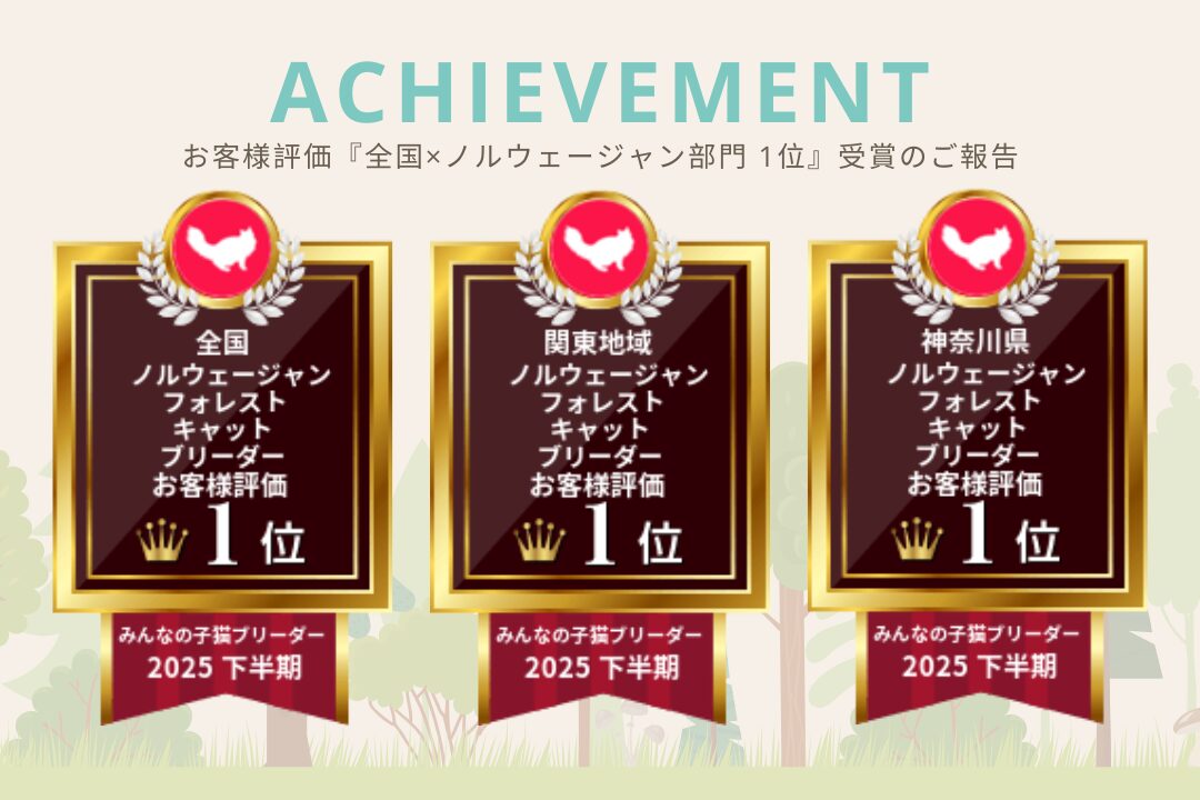 【全国 ノルウェージャンフォレストキャット部門 1位】(前期3位、前々期2位)