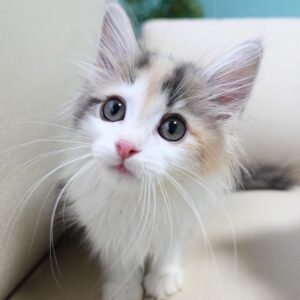 特徴:🎨額模様が映える三毛姫💖ふわふわ毛並みも魅力✨