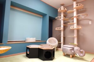 キャットタワーは必須ではないものの、非常に相性が良く推奨できる設備です。