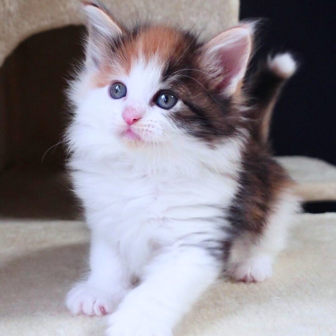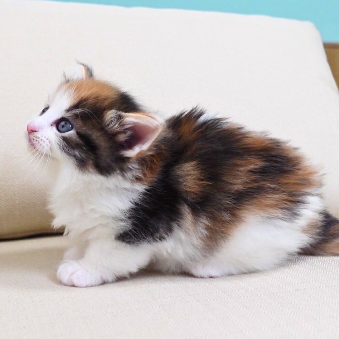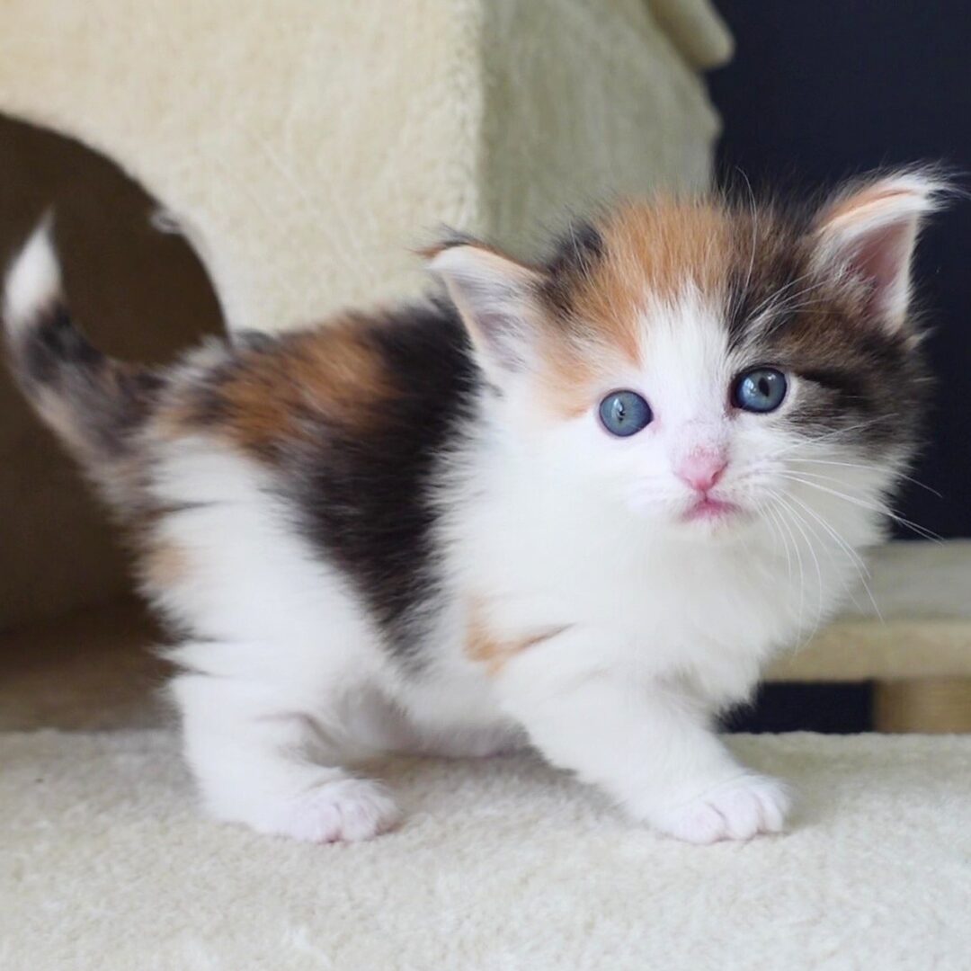 全身に広がる華やかな三色の被毛に、胸元や足先の白い毛並みが加わり、明るく上品な雰囲気をいっそう引き立てています🌸