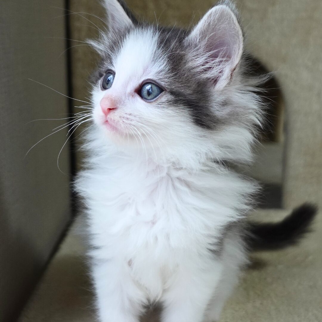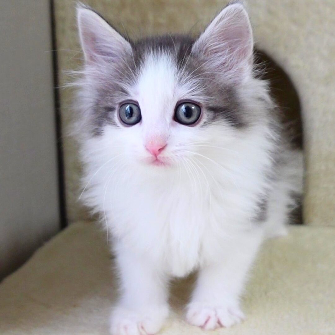 左右対称に整ったお顔に、額の白いハチワレ模様がきれいに入り、凛とした上品さと可愛らしさをあわせ持つ表情が魅力です✨