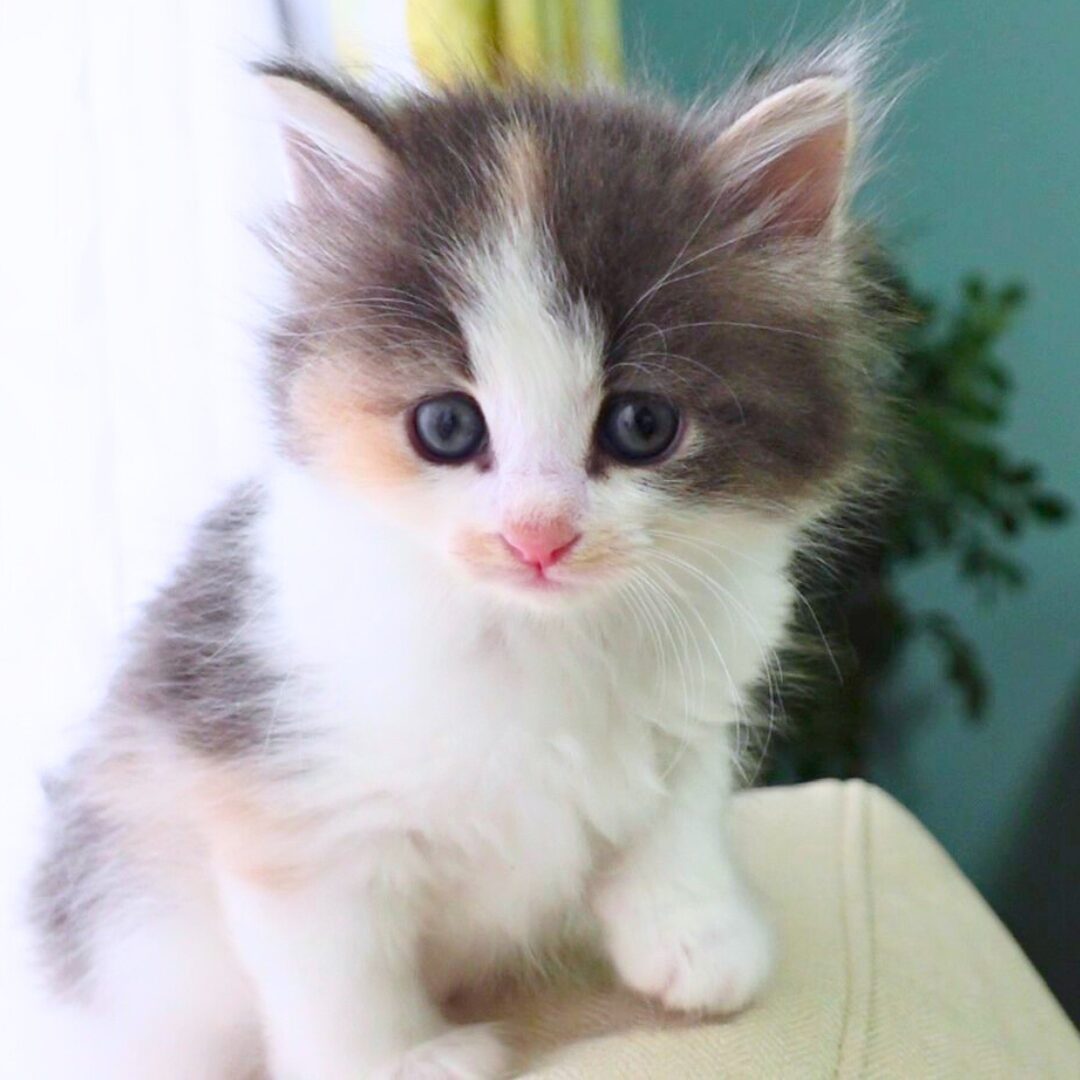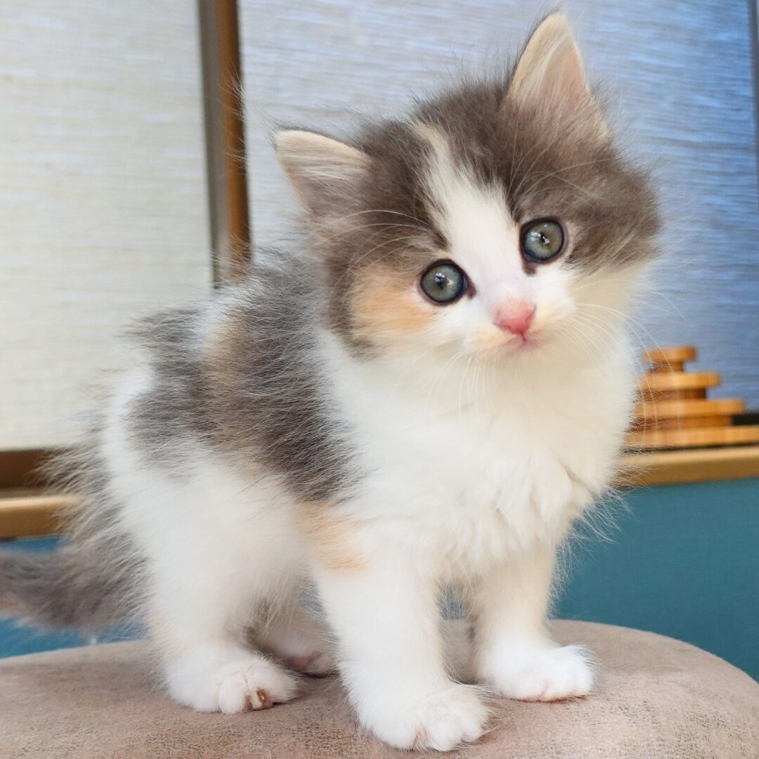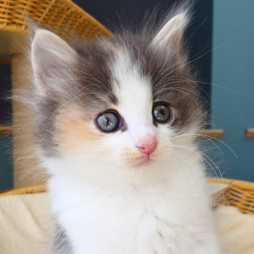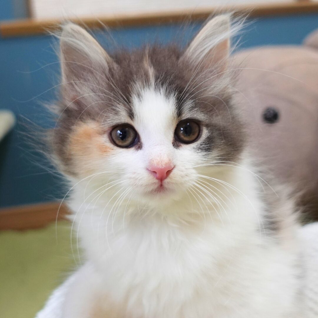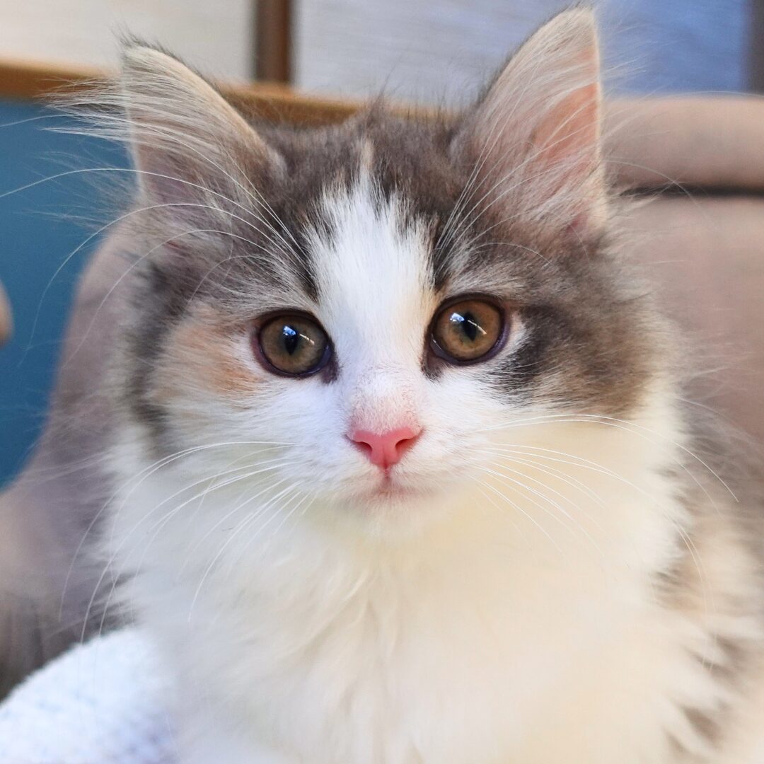 リネアちゃんは、綺麗なハチワレ模様の額と、左右にブルーとクリームのラインが入った頬がとても印象的な女の子です🎀✨