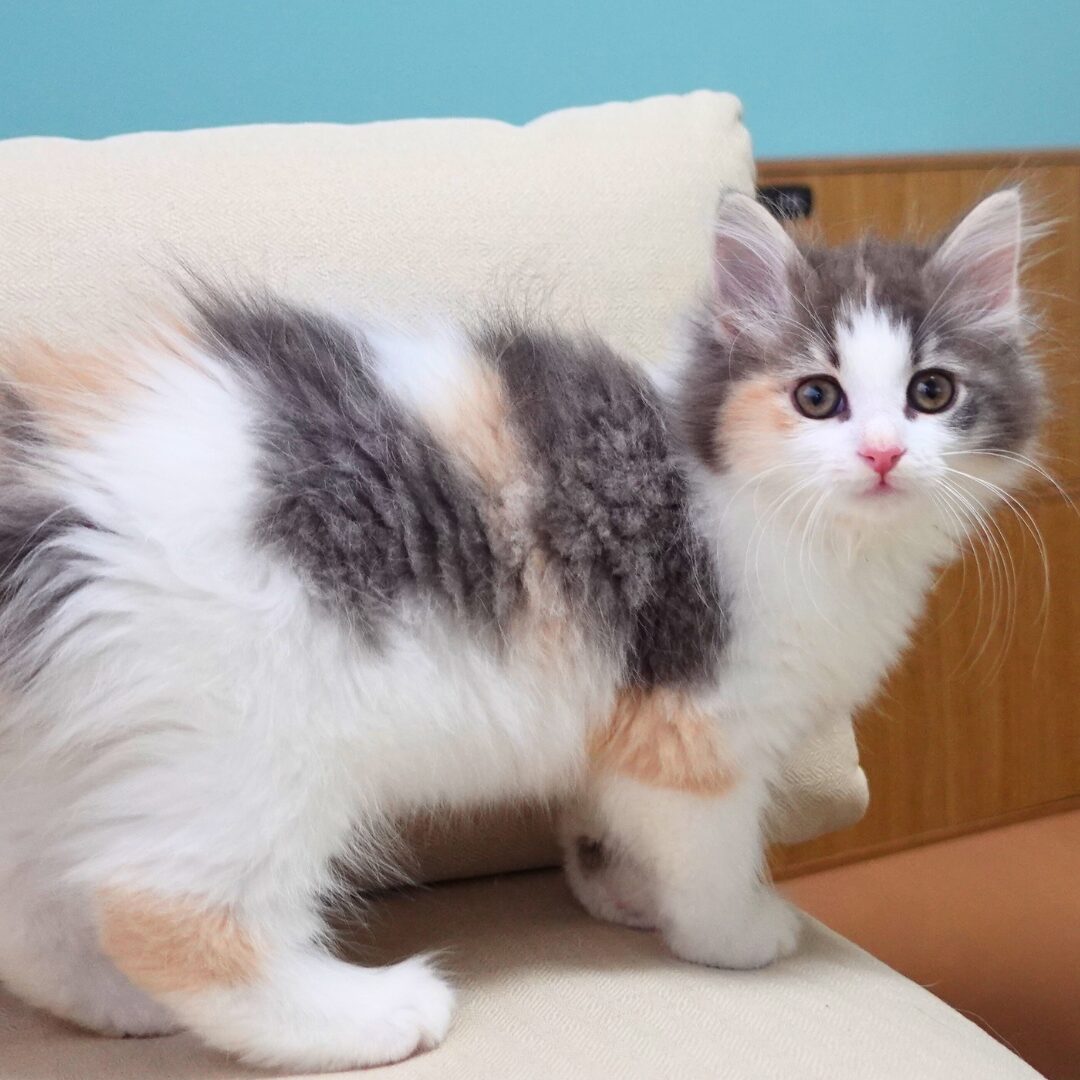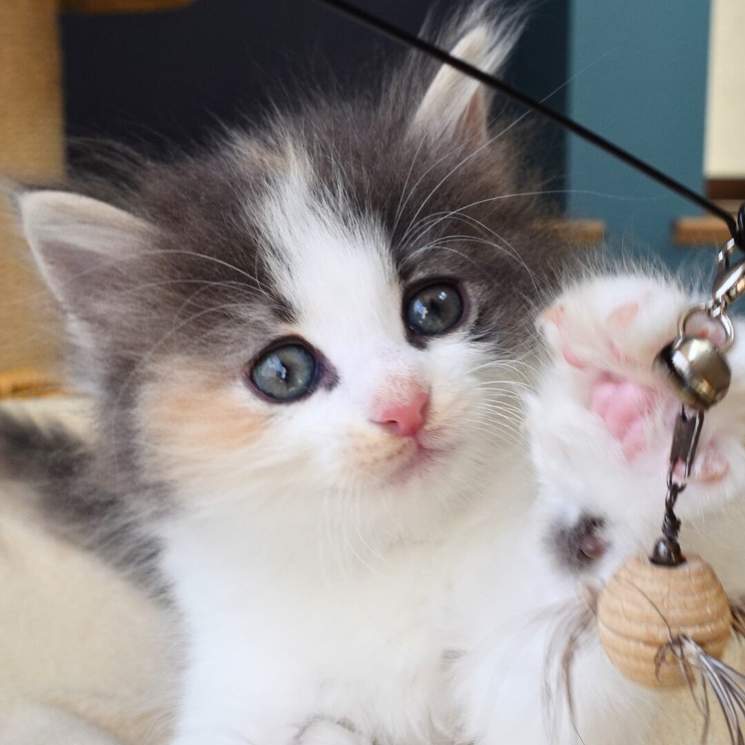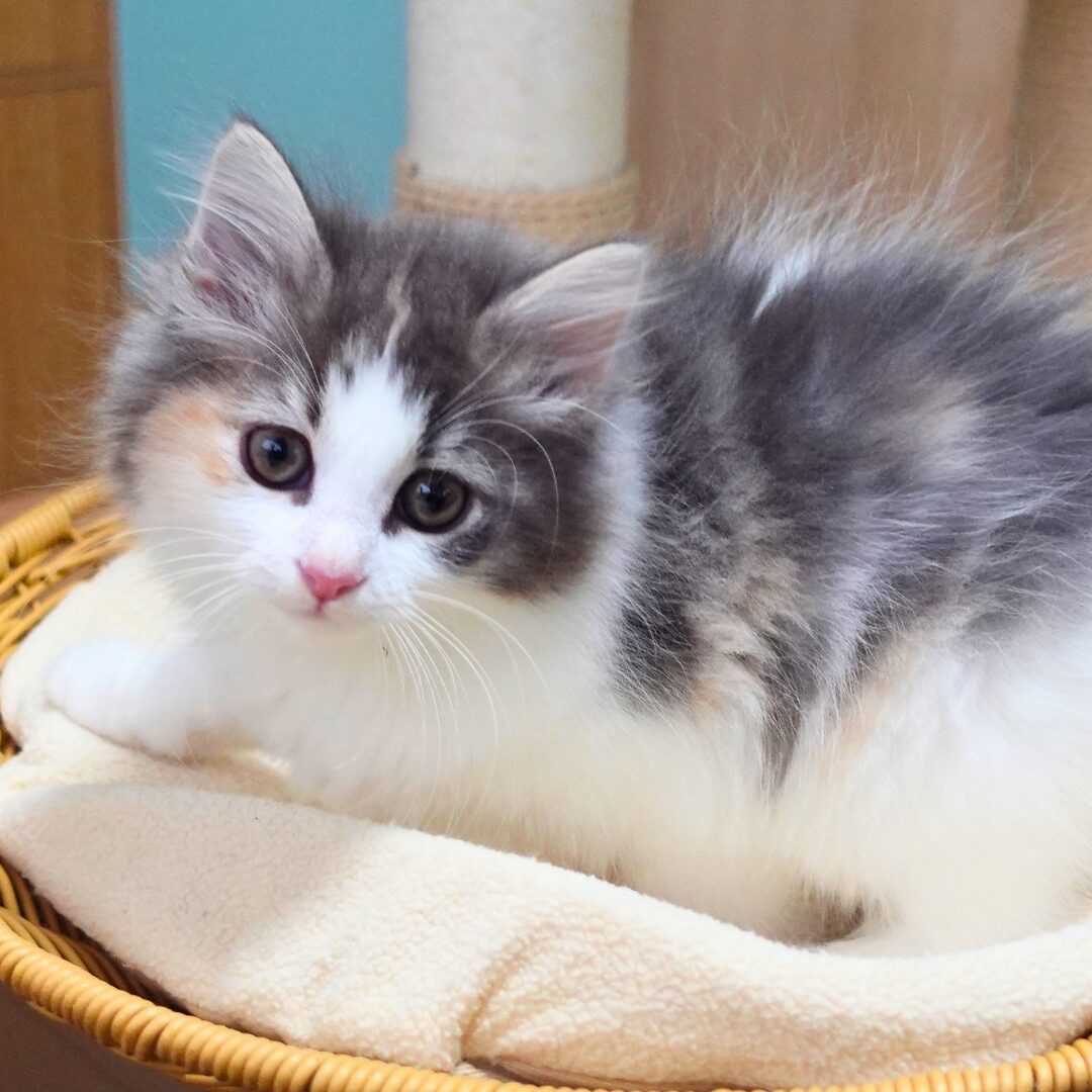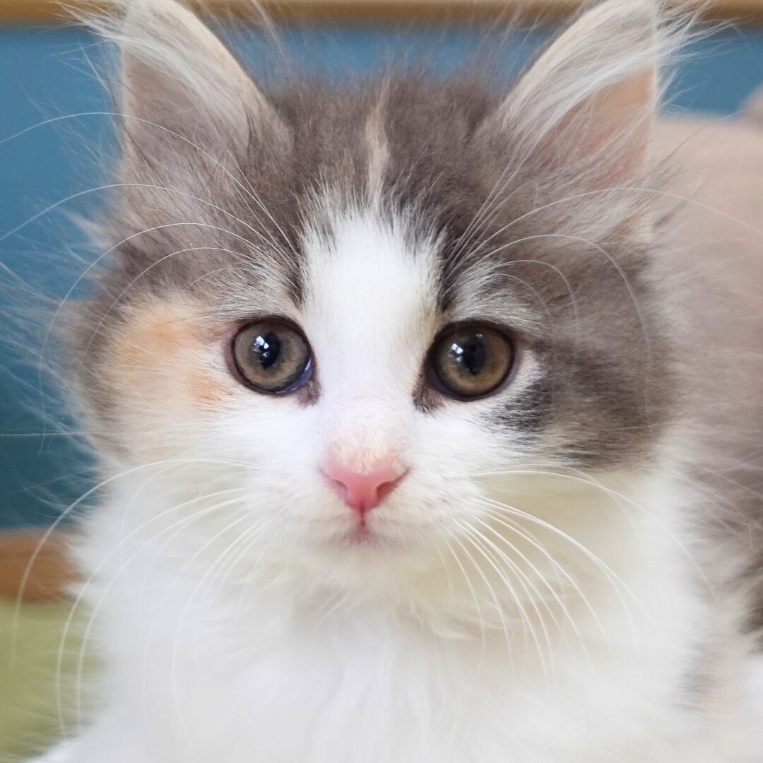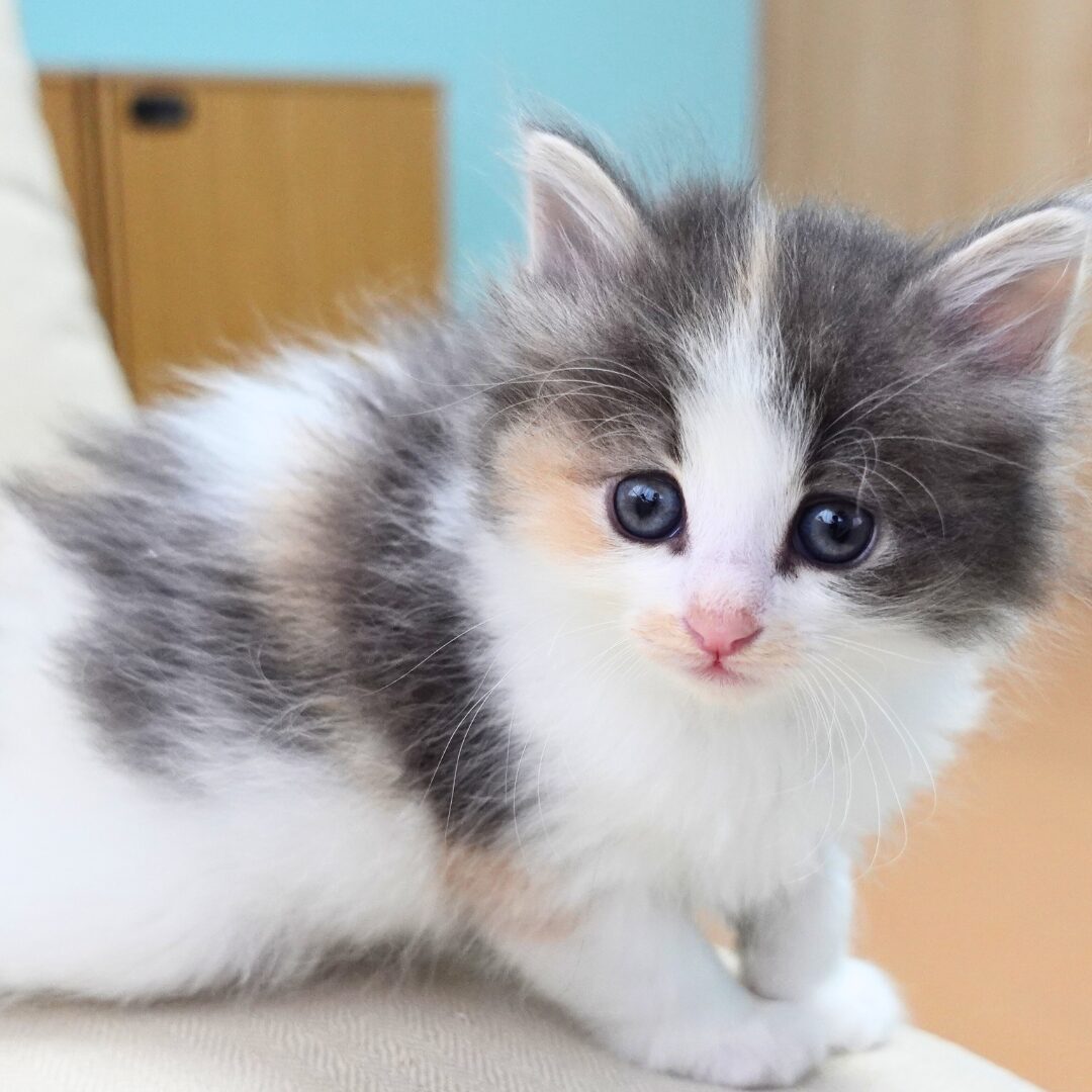 リネアちゃんは、綺麗なハチワレ模様の額と、左右にブルーとクリームのラインが入った頬がとても印象的な女の子です🎀✨