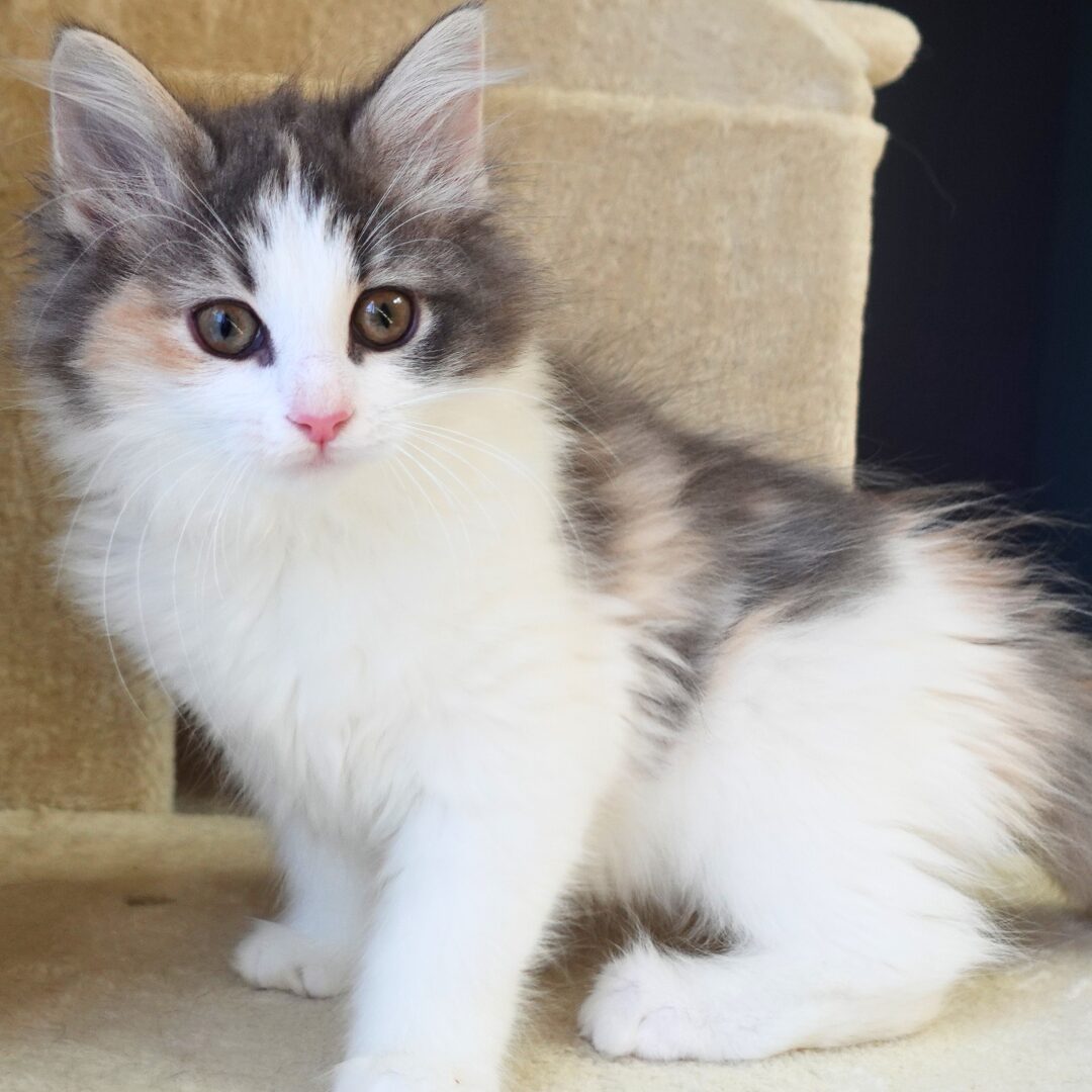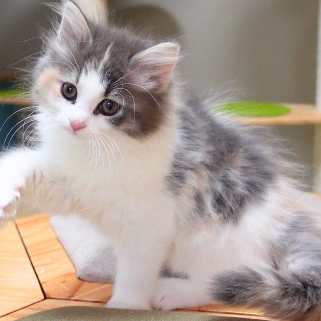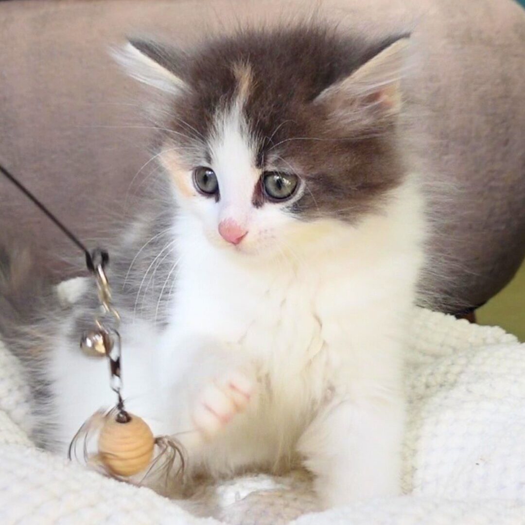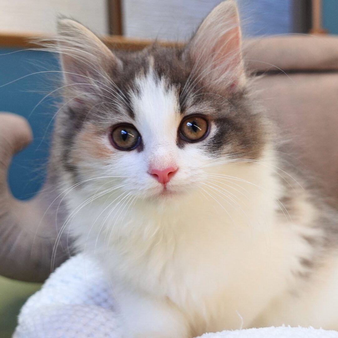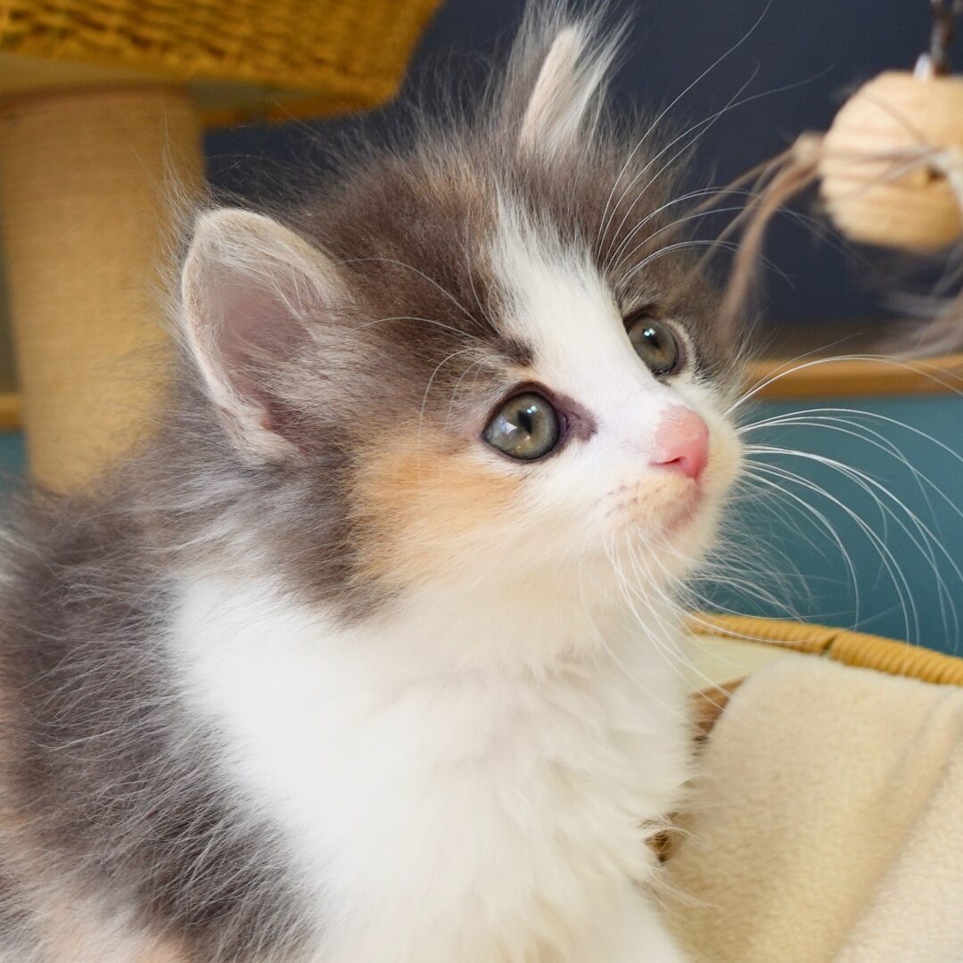 リネアちゃんは、綺麗なハチワレ模様の額と、左右にブルーとクリームのラインが入った頬がとても印象的な女の子です🎀✨