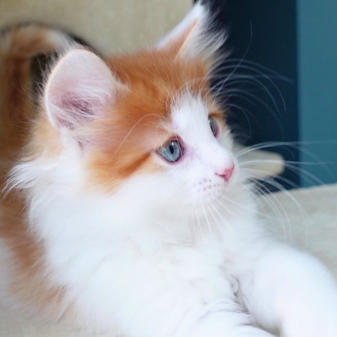 ハチワレの入った丹精なお顔立ちに、胸元や足先に広がる白い毛並みが加わり、
