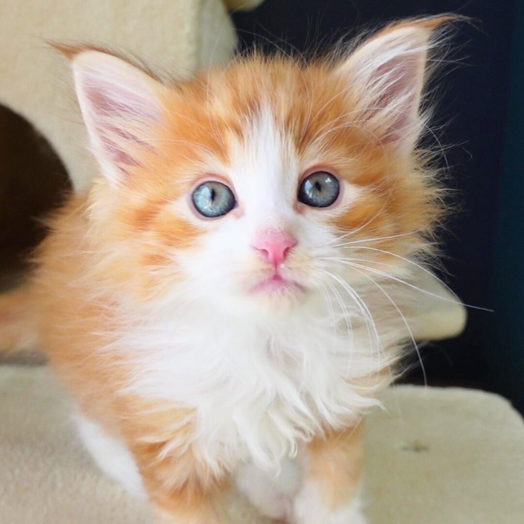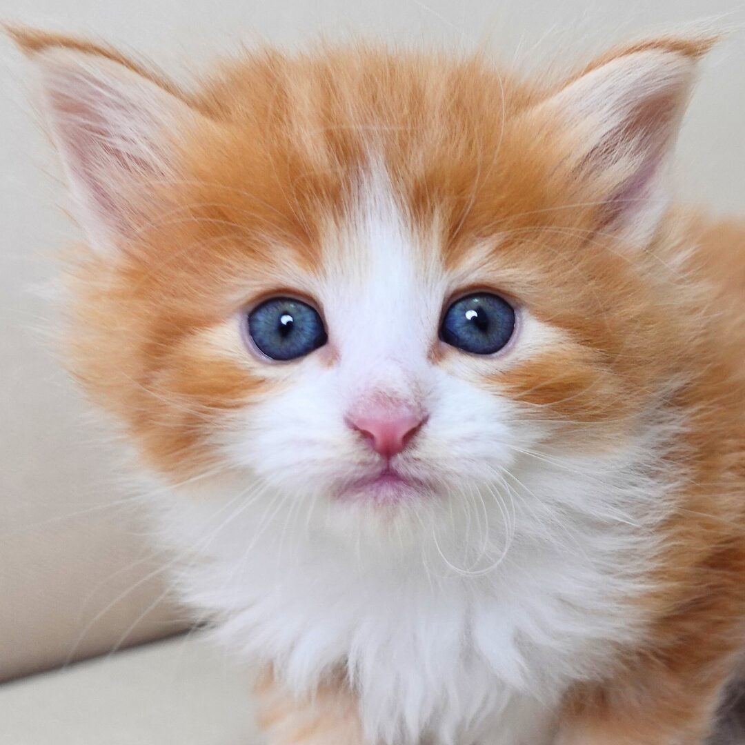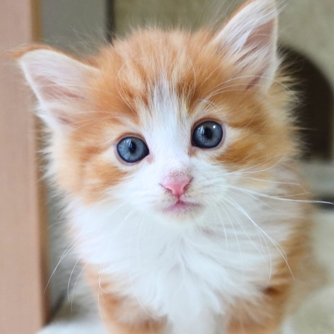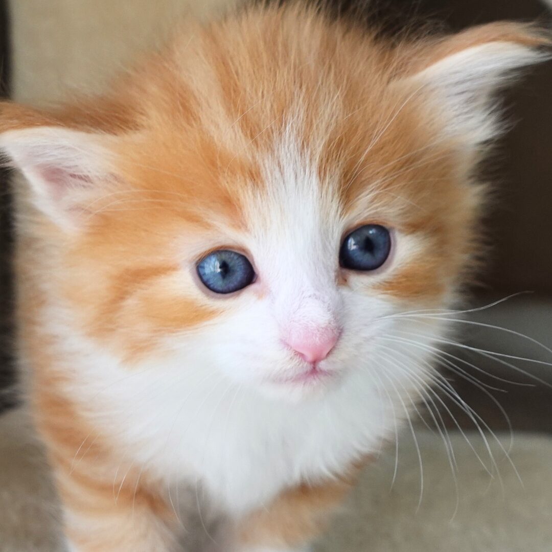 左右対称に整ったお顔立ちに、額の白いハチワレ模様がきれいに入り、